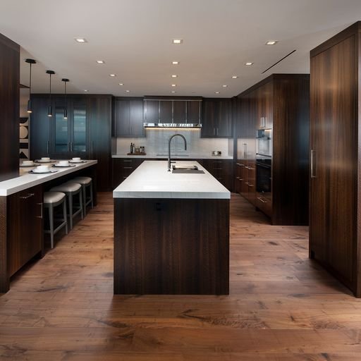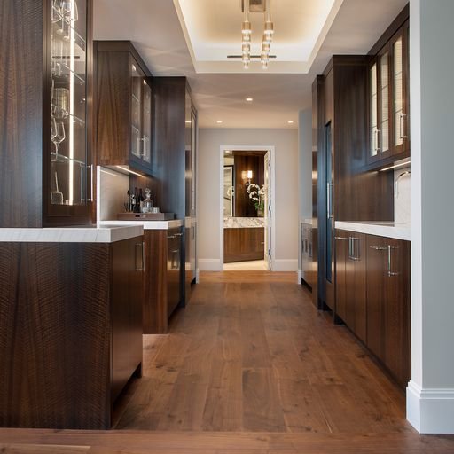The black walnut hardwood floor adds depth and dimension to any room. Through its richness and luster, it creates an atmosphere of warmth and serenity that invites occupants and helps the guests enjoy its natural beauty.